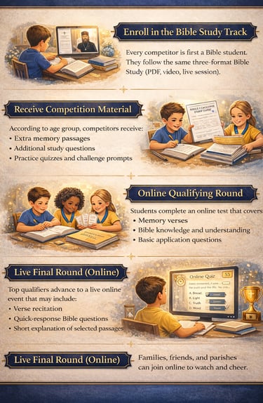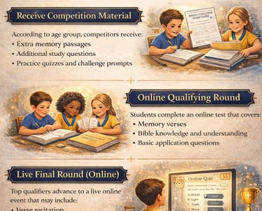 This competition is not just an event—it’s a season of intense spiritual and intellectual growth for your child. During the Scripture Challenge: