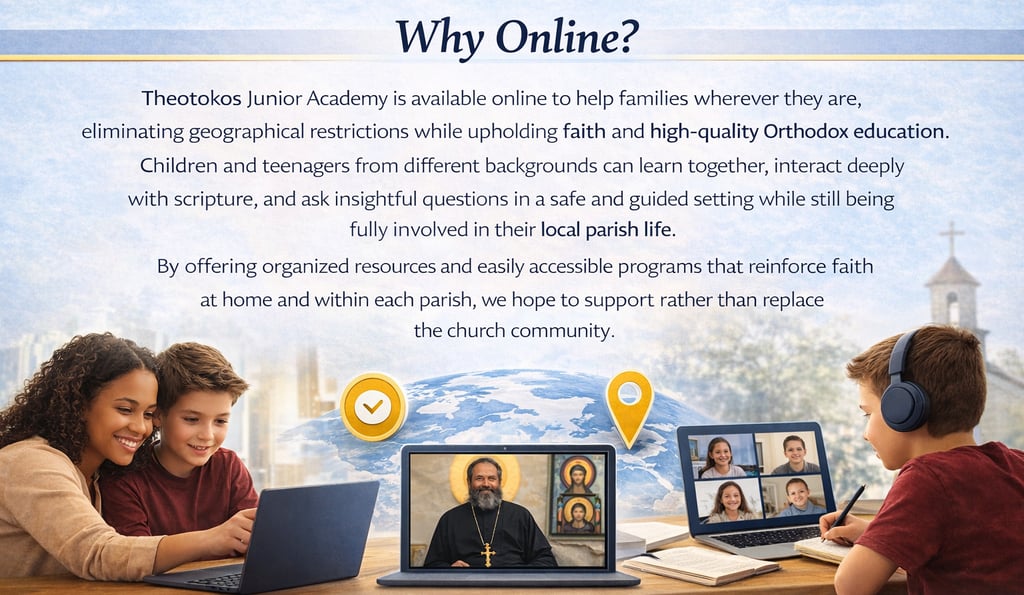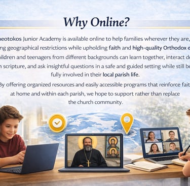 Theotokos Junior Academy, working with Holy Sophia University, aims to teach children and teens about the Coptic Orthodox faith through the Bible, church practices, discussions of beliefs, and support for families, so they can understand, practice, and stand up for their faith with confidence.